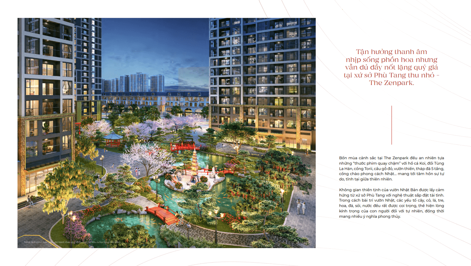 Đặc quyền sống resort 5 sao với vườn Nhật nội khu và hồ bơi 4 mùa. Chỉ một bước chân, chủ nhân căn hộ tương lai đã chạm tay tới cuộc sống năng động, đủ đầy.